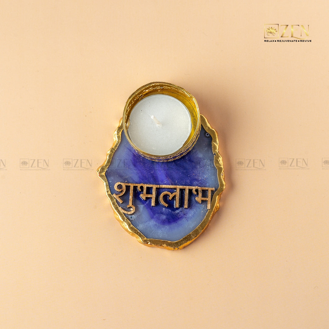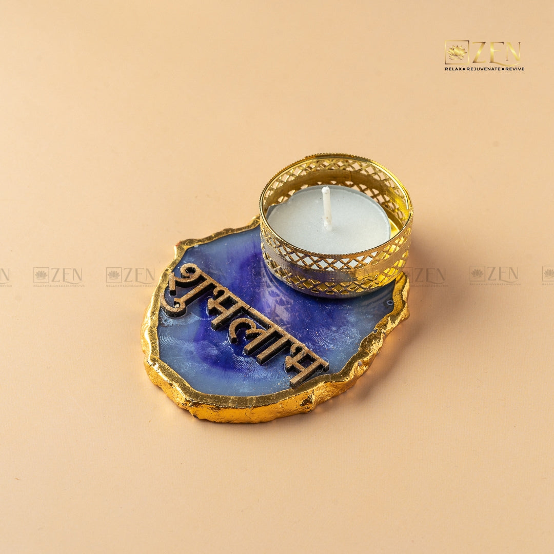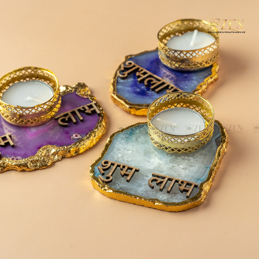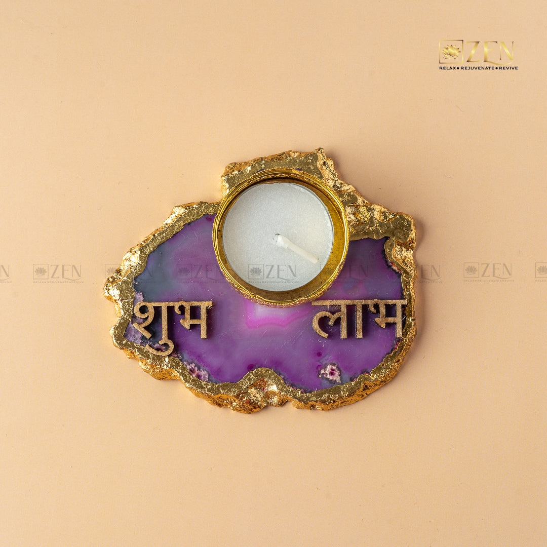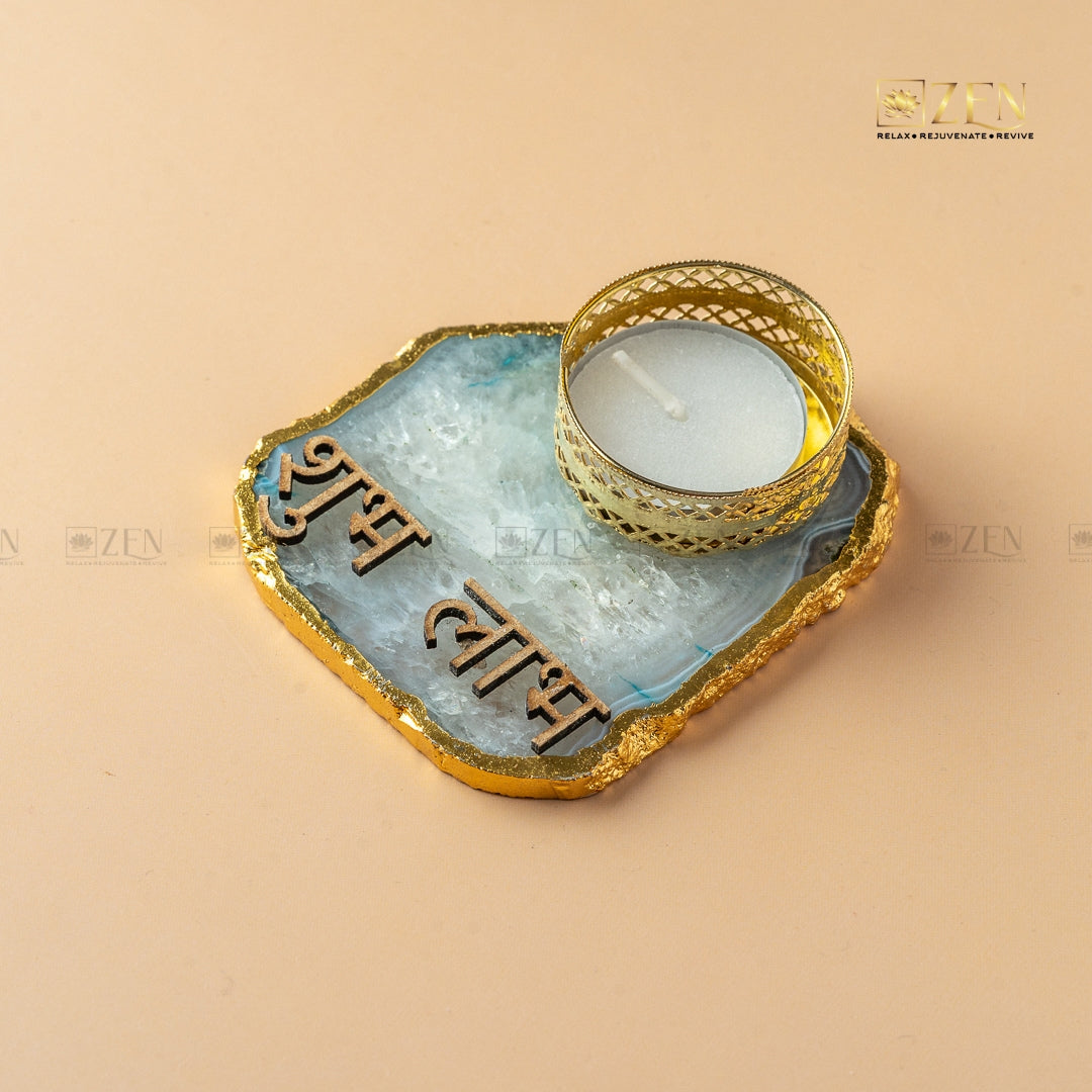 Agate Tea Light Holder with Gold Plating by The Zen Crystals – Perfect for Diwali Décor & Year-Round Elegance | Shubh-Labh | Handcrafted Agate Candle Holder for Serenity, Ambiance & Prosperity