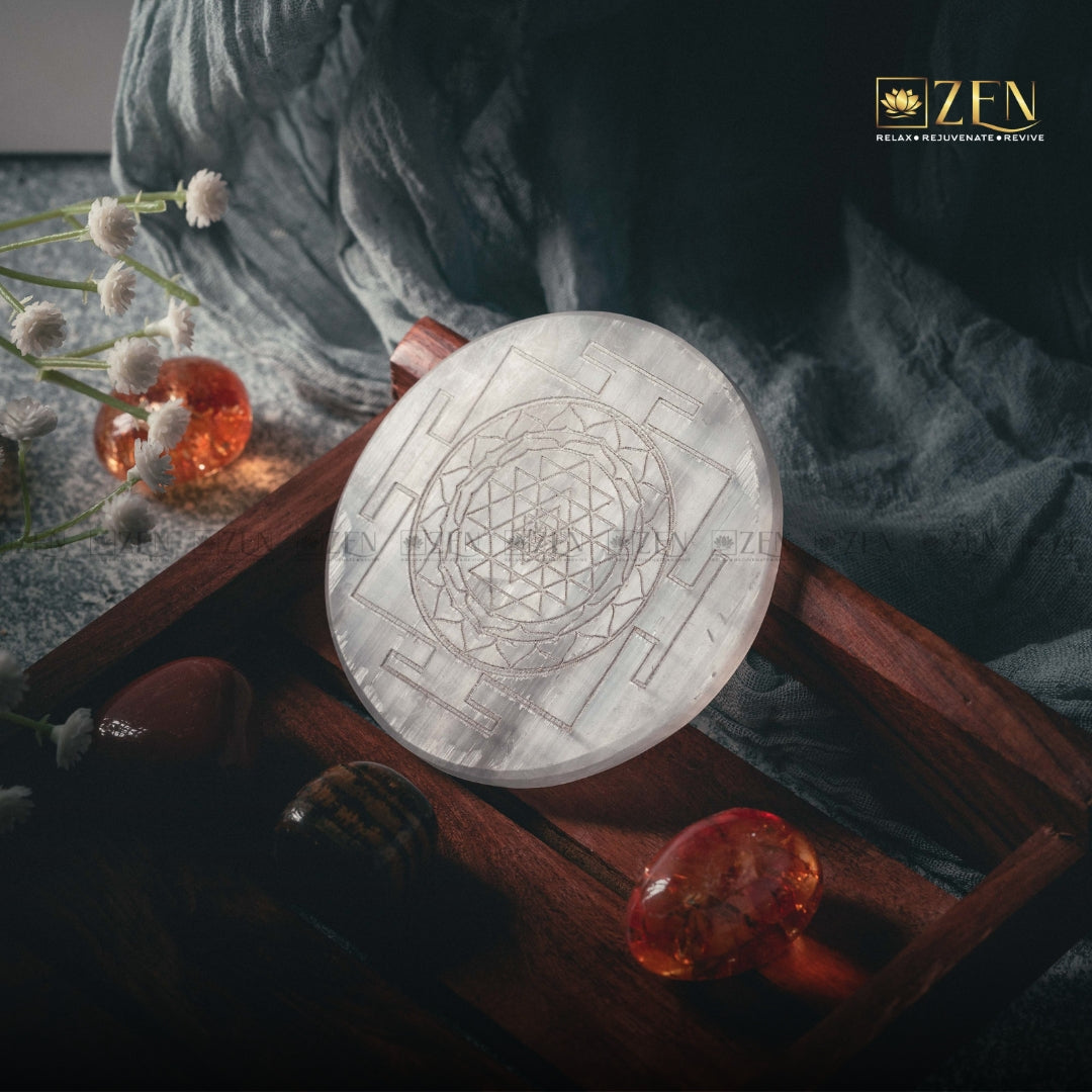 Selenite Plate - Shri Yantra Symbol | The Zen Crystals