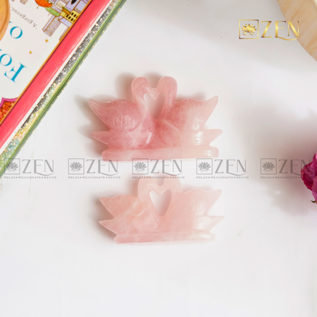 Rose Quartz Mandarin Duck Pair | The Zen Crystals