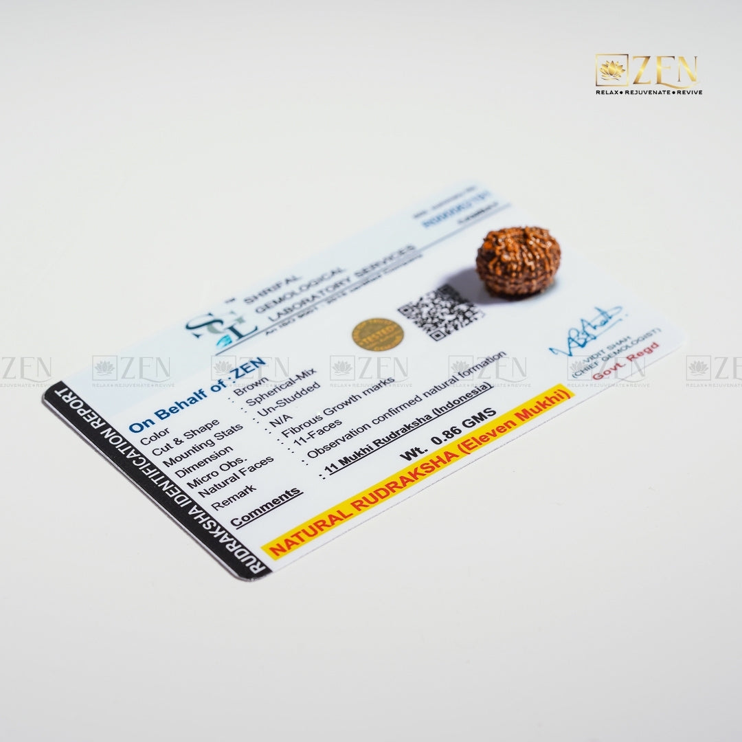 Experience Enhanced Confidence and Spirituality with Zen Crystals' 11 Mukhi Rudraksha from Indonesia – Authentic Bead with Lab Certificate, Boosts Courage, Focus, Inner Peace