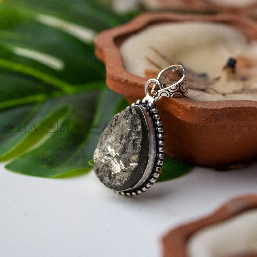The Zen Crystals Raw Pyrite Pendant For Men & Women